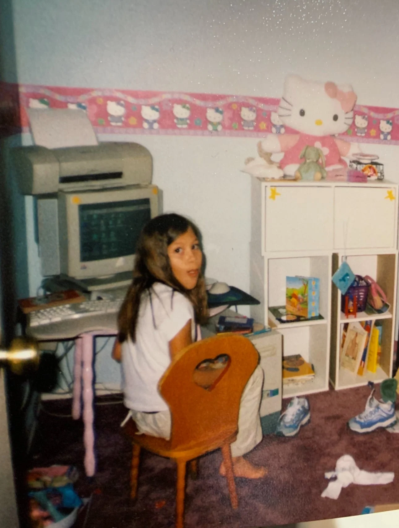 Throwback to my childhood room. I was probably in 4th grade in this photo. Surrounded by Hello Kitty wallpaper, photo albums, books, and my ‘A’ journal, I was already dreaming big. Behind that giant monitor, I always felt like I was running the show, CEO of my own life before I even knew what that meant.
